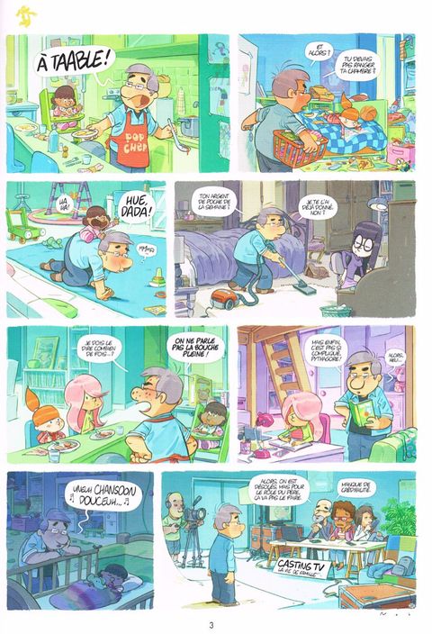 Être père n'est pas toujours simple. Ce n'est pas Dad, père célibataire en charge de quatre adorables, mais néanmoins épuisantes, filles, qui va dire le contraire. Entre petits bonheurs et grosses fâcheries, le père à la maison gère plutôt bien. Jusqu'au jour où son corps l'abandonne et qu'il se plie, littéralement, en deux. Impossible de faire la moindre tâche ménagère et encore moins de s'occuper de ses quatre filles. D'autant que Bébérénice découvre l'usage de ses jambes, que Roxane est bien décidée à changer le monde, qu'Ondine rapporte des bulletins de notes catastrophiques et que Pandora est en crise existentielle... la situation est critique !