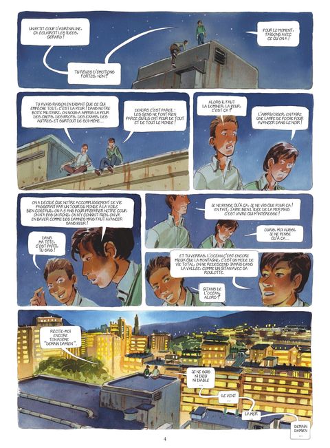 L’aventure devenue référence.Damien est l’histoire d’un voyage devenu légendaire. Damien, c’est aussi le nom du petit voilier en bois qui, dans les années 70, effectua ce tour du monde exceptionnel de cinq ans, aujourd’hui inscrit en référence dans le domaine de l’aventure. Alors copains d’école à Grenoble, Jérôme Poncet et Gérard Janichon, décident à 17 ans de consacrer leur jeunesse à courir le monde. Leur cap est la liberté, la découverte, l’accomplissement, la voile aux extrêmes du globe. Inexpérimentés mais portés par leur idéal, ils quittent La Rochelle en mai 1969. Ils y reviendront en septembre 1973, après un voyage initiatique de plus de 55 000 milles. On les appellera « Les Défricheurs d’océans ». C’est que malgré son équipement précaire et son manque de confort, Damien accumule les grandes premières inédites : Arctique, remontée de l’Amazone à la rencontre des populations locales reculées, Cap Horn, Tropiques et trois saisons de suite dans les latitudes rugissantes du Grand Sud. Leur but est d’aborder le continent Antarctique, ce qui est fait en février 1973. Souvent malmené, chaviré, démâté, chahuté par les glaces et les coups du sort, Damien ne renonce jamais et son équipage tient bon. En dépassant les notions géographiques, les 2 jeunes marins ont apprivoisé les éléments turbulents; par l’amitié et la persévérance, ils ont su donner une dimension humaine inoubliable à leur périple. Classé monument historique et accessible au public, Damien a été refait à neuf en 2019. Fidèlement adaptée par Gérard Janichon, servie par la finesse des aquarelles de Vincent, cette odyssée maritime poétique et humaniste nous fait vivre des pages d’amitié profonde jusqu’à l’approche de la mort, et d’envoûtement avec l’Océan, le vent, la glace, la grande forêt amazonienne et le gré des rencontres humaines, éphémères et intenses.