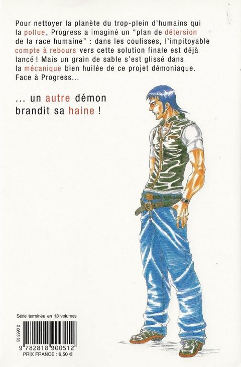 Ils ont tué sa femme et sa fille, ils l'ont amputé des deux bras et l'ont laissé pour mort. Ils ont eu tort. Ils vont payer. Pour nettoyer la planète du trop-plein d'humains qui la pollue, Progress a imaginé un ""plan de détersion de la race humaine"" : dans les coulisses, l'impitoyable compte à rebours vers cette solution finale est déjà lancé ! Mais un grain de sable s'est glissé dans la mécanique bien huilée ce projet démoniaque. Face à Progress... ... un autre démon brandit sa haine !