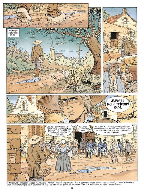 Alors que la Révolution triomphe à Paris, en Vendée le peuple résiste aux idéaux révolutionnaires qui "bafouent" coutumes et traditions religieuses. Dampierre, jeune homme avec une ambition hors du commun, assiste aux combats fratricides entre "les bleus" et les "blancs". Insensible aux idéaux, insensible aux sentiments, il poursuit son irrésistible ascension, non sans y laisser quelques plumes et gagner quelques cicatrices... Le dessin de "Swolfs" accompagne à merveille un scénario précis, documenté et palpitant.