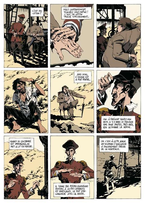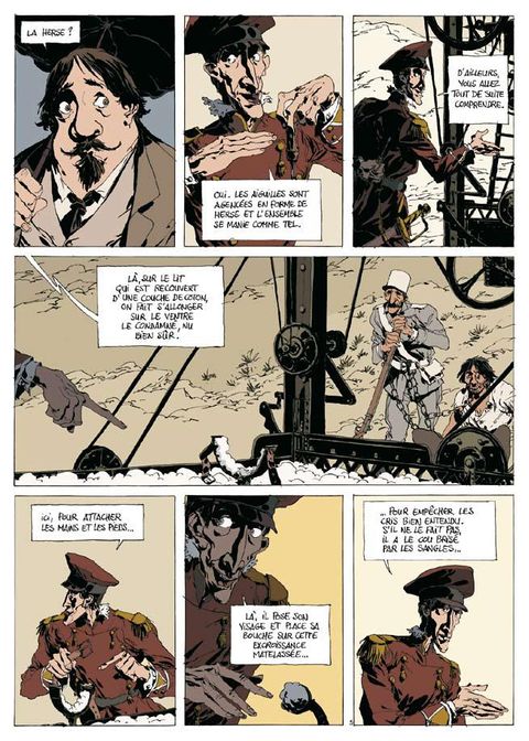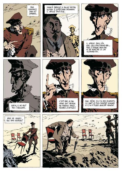 Un voyageur, qui visite une colonie pénitentiaire, est appelé à donner son avis sur le système judiciaire qui y est appliqué. Un officier, fervent défenseur de l'idéologie de l'ancien commandant, le reçoit et lui explique le fonctionnement de la machine infernale conçue par son mentor. La sentence, appliquée sans jugement, est l'inscription du commandement enfreint dans la chair jusqu'à ce que mort s'ensuive...