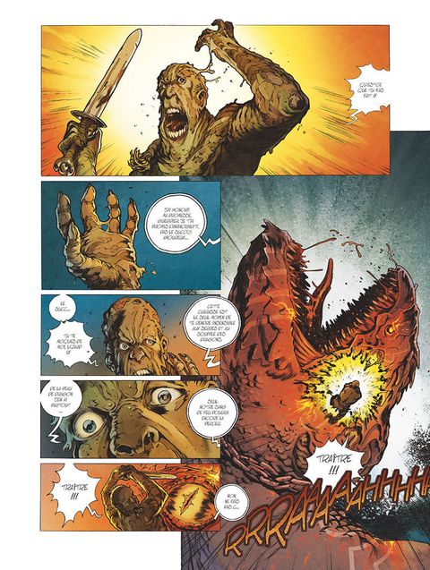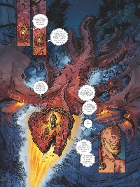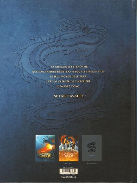 Les secrets des dragons ont été oubliés... Les dragons sont des gardiens de trésors, l'affaire est entendue. Mais ces montagnes de richesses sont d'abord liées à un surprenant phénomène : au moment de la mue, les écailles de ces légendaires reptiles se transforment en or. Ce miracle, dont l'origine reste un mystère, pousse un trio atypique à se former comprenant Phylogène d'Esquamate, fils de scientifiques dracologues disparus, Wei, pirate chinois capable de dresser des dragons, et Udo Von Winkelried, descendant d'une lignée de chasseurs de dragons remontant à Siegfried. Ces trois hommes s'allient dans le but de tuer le plus gigantesque des dragons que la terre ait jamais porté. Mais pour achever une bête aussi énorme et s'emparer de l'incroyable trésor que son corps tout entier représente, une seule solution : la tuer... de l'intérieur. Ils doivent aller là où personne, avant eux, ne s'est aventuré : dans le ventre du dragon. Premier volet d'un triptyque de fantasy dans la pure tradition du genre, Dans le Ventre du Dragon propose une relecture originale du mythe de ces fascinantes créatures ailées construit autour de la thématique de la transmission familiale. Mathieu Gabella et Christophe Swal jouent avec les codes et les histoires de dragons pour nous délivrer un récit aussi documenté qu'épique et mystérieux.