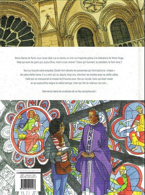Qui sont ces gens qui vivent dans les coulisses d'un monument historique, d'une industrie, d'un lieu populaire ? À quoi ressemble un quotidien quand votre open-space concorde avec le parvis de Notre-Dame de Paris ? Qui sont ceux qui font battre le "choeur" de cette vieille dame ? "Dans les coulisses de Notre-Dame", première d'une série de bandes dessinées, toutes placées sous le signe de la découverte et du récit journalistique.