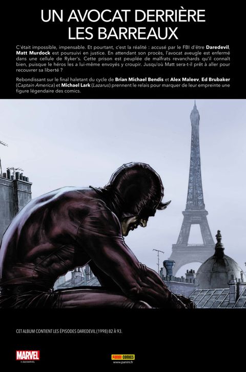 À cause des machinations d'un mystérieux adversaire, Daredevil est derrière les barreaux, et ses amis lui ont tourné le dos. Est-ce un hasard qu'il se retrouve dans la même prison que le Caïd et le Punisher ? Comment Matt Murdock va-t-il se sortir de cette situation épique ? Ed Brubaker avait fort à faire en prenant la suite directe de Brian Michael Bendis sur une série que l'illustre scénariste avait totalement revitalisée. Pari tenu par l'auteur de la Mort de Captain America qui fait encore monter les enjeux. Ce grand succès de la collection MARVEL DELUXE a les honneurs d'une nouvelle édition.
