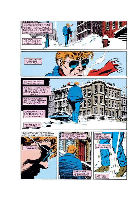 Malgré une colorisation criarde, typique des années 80, ces épisodes formant le cycle "Renaissance" représentent un chef d'œuvre tant dans la construction efficace et haletante du récit, que dans le découpage bluffant et les dessins d'une grande réussite. L'ambiance, le contexte et la psychologie dégradée de Matt/Daredevil sont superbement retranscrits. (...) Voir le commentaire