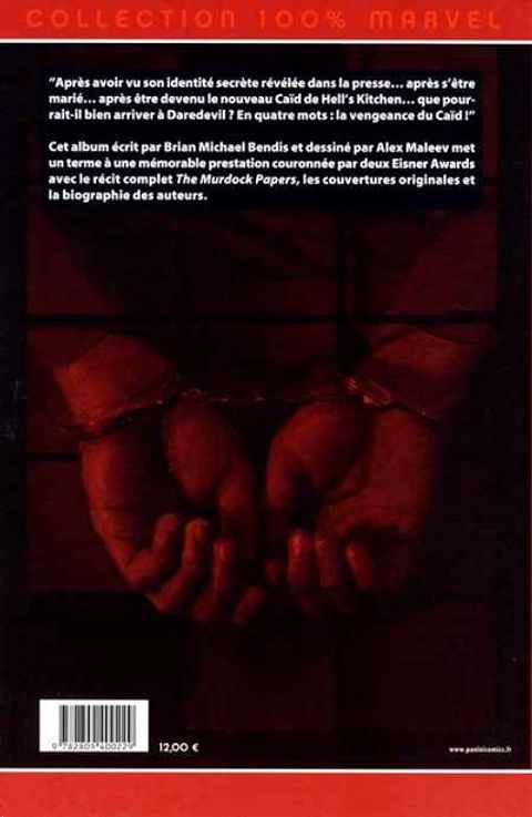 Cet album écrit par Brian Michael Bendis et dessiné par Alex Maleev met un terme à une mémorable prestation couronnée par deux Eisner Awards avec le récit complet The Murdock Papers, les couvertures originales et la biographie des auteurs.