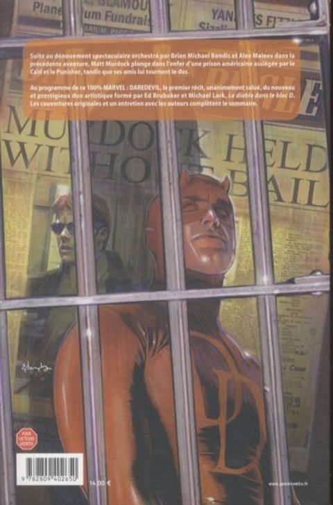 On retrouve Matt exactement là où on l'a laissé dans le précédent album mais cette fois dans les mains d'un nouveau duo d'artistes qui sont Brubaker et Lark. Cette nouvelle intrigue où l'on suit Matt en prison est géniale à suivre et les dessins poursuivent parfaitement bien le travail effectué par (...) Voir le commentaire