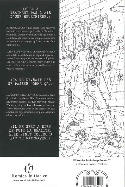 "C'était pas une affaire pour toi, c'est tout". DARK BLUE // En ville, une nouvelle drogue aux effets dévastateurs se répand à grande vitesse, à mesure que les meurtres se multiplient. L'inspecteur Christchurch parviendra-t-il à mettre la main sur le responsable de cette vague de crimes ? ATMOSPHERICS // Des dizaines de cadavres sont retrouvés dans une petite ville de l'Amérique profonde. L'unique survivante de cette tuerie est interrogée, mais de ses maigres souvenirs ne semblent se dégager qu'une improbable explication ... "Elle a vraiment pas l'air d'une meurtrière".