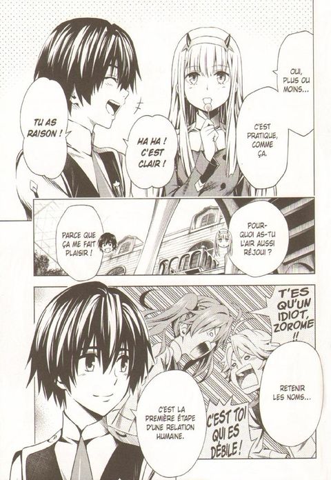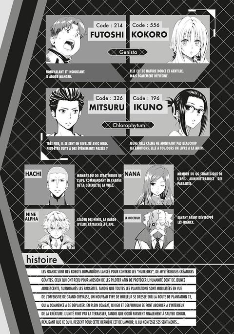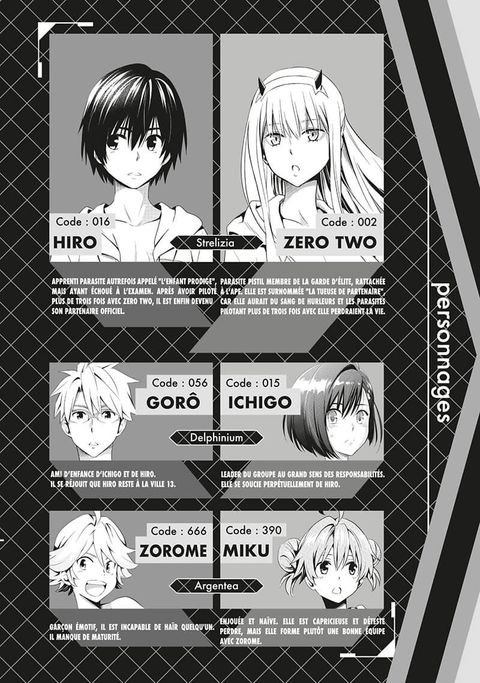 Dans un futur lointain, l'humanité s'est retranchée dans des villes fortifiées mobiles, les Plantations. Elles sont régulièrement menacées par les Hurleurs. De jeunes pilotes affrontent ces ennemis à bord des Franxx, des robots géants. Hiro ne s'accorde pas avec sa partenaire et échoue à devenir pilote, jusqu'à l'arrivée de Zero Two, une étrange jeune fille avec laquelle il est capable de piloter.