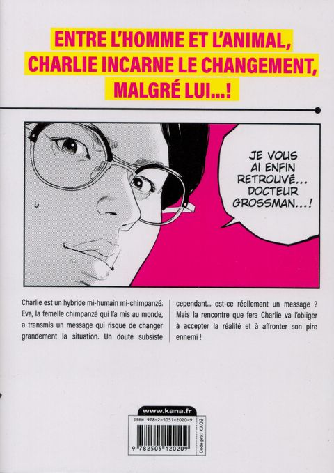 Eva, la femelle chimpanzé qui l’a mis au monde, a transmis un message qui risque de changer grandement la situation. Un doute subsiste cependant… est-ce réellement un message ?Mais la rencontre que fera Charlie va l’obliger à accepter la réalité et à affronter son pire ennemi !