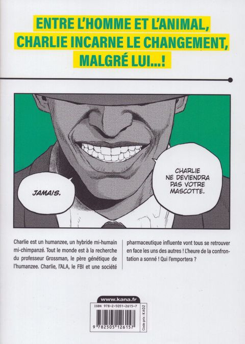 Tout le monde est à la recherche du professeur Grossman, le père génétique de l’humanzee. Charlie, l’ALA, le FBI et une société pharmaceutique influente vont tous se retrouver en face les uns des autres !L’heure de la confrontation a sonné ! Qui l’emportera ?