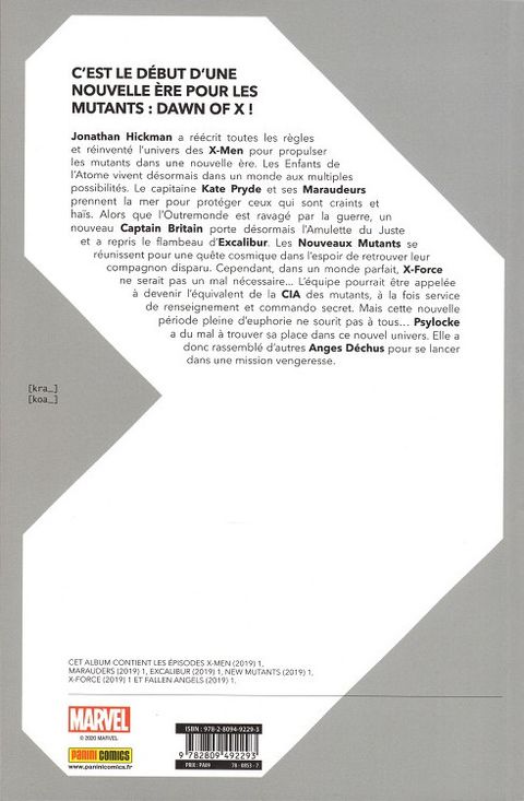 premier volume de l’ère Krakoa post HoxPox X -men #1 Introduit la famille Summers élargie et nous montre l’état de la station Orchis post HoxPox . Je suppose que c’est la série « colonne vertébrale » puisque scénarisee par Hickman Excalibur #1 Betsy Bradock devient Captain Britain et part vers l’outre-monde avec gambit Jubilee et (...) Voir le commentaire