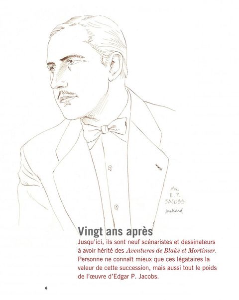Qu'avons-nous réalisé depuis la mort d'E. P. Jacobs ? C'est la question que se posent Jean-Luc Cambier et Éric Verhoest dans ce nouvel ouvrage, hommage à l'auteur, à la série et aux repreneurs. Au travers de nombreux documents – interviews, lettres, notes, dessins, croquis, etc. –, les auteurs rendent compte des différents chemins empruntés par les héritiers de Jacobs pour scénariser et dessiner les nouvelles Aventures de Blake et Mortimer .