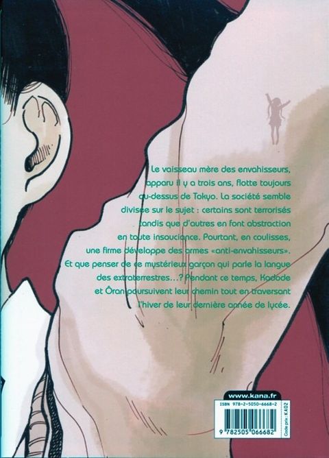 Le vaisseau mère des envahisseurs, apparu il y a trois ans, flotte toujours au-dessus de Tokyo. La société semble divisée sur le sujet : certains sont terrorisés tandis que d'autres en font abstraction en toute insouciance. Pourtant, en coulisses, une firme développe des armes « anti-envahisseurs ». Et que penser de ce mystérieux garçon qui parle la langue des extraterrestres...? Pendant ce temps, Kadode et Ôran poursuivent leur chemin tout en traversant l'hiver de leur dernière année de lycée.