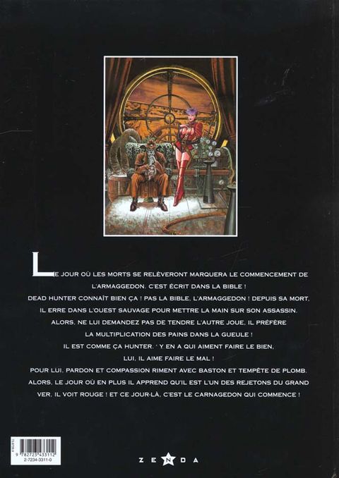 Vivant, Hunter était un garçon plutôt violent, puis son assassinat l'a vraiment vexé ! Alors imaginez un peu, ramené à la vie par un savant fou mais pas con, notre zombie a plutôt la haine... Vaut mieux être son pote, ce qui n'est pas le cas des Sudistes irréductibles ni des maraudeurs du Ku Klux Klan... Et quand il aime pas, Hunter, il cause pas ! Il cogne ! Il fracasse ! Il étripe ! Il massacre ! C'est bien fait pour leurs sales gueules d'encagoulés ! Dead Hunter est un western fantastique où se mêlent violence, magie noire et humour du même ton ! Sorciers indiens, shérifs zombies, villes fantômes et saloons hantés sont au programme de ces nouveaux mystères de l'Ouest. Alliant frissons et franche rigolade, Tacito fait voler en éclats les codes du Western, et invente un nouveau genre qui doit autant aux feuilletons télé qu'aux jeux de rôles. Par le dessinateur de 666.
