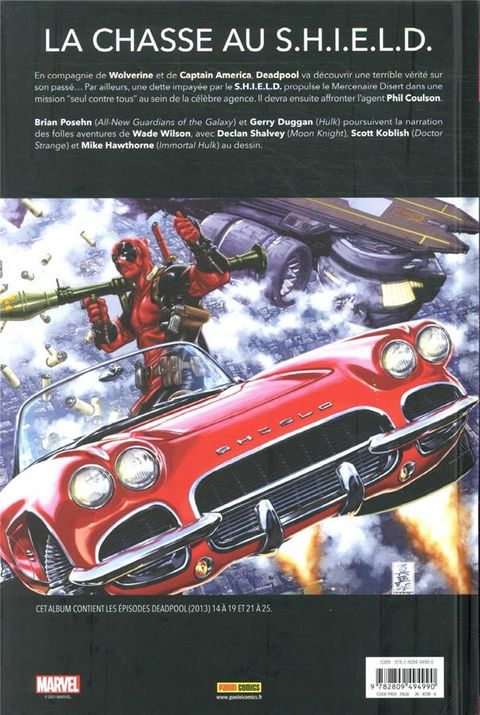 Accompagné de Wolverine et Captain America, Deadpool se lance dans une aventure bien plus sombre qu'à l'accoutumée, au cours de laquelle il découvre une terrible vérité sur son passé. Et alors qu'une idylle naît entre le Mercenaire Disert et Shiklah, un succube démoniaque, il se retrouve en porte-à-faux avec le S. H. I. E. L. D. qu'il doit affronter en solo ! "Une aventure singulière qui propose deux approches bien distinctes du personnage, aussi bien dans le visuel que la tonalité pour un résultat largement réussi". (Actua BD) Avec les aventures contenues dans ce volume, Gerry Duggan et Brian Posehn sortent de la simple comédie en ajoutant un passif particulièrement sombre à l'histoire de Wade Wilson. La saga Le Bon, la Brute et le Truand fait partie des points d'orgue de ce qui est clairement la période la plus savoureuse du héros qui fête ce mois-ci ses trente ans.