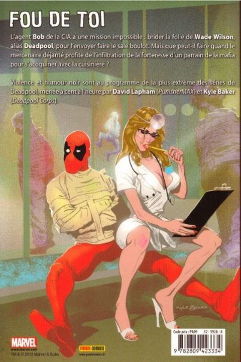 L'ultrapopulaire Deadpool s'installe dans la collection MAX, une gamme réservée à un public plutôt averti. Et c'est un vrai régal, car le mercenaire déjanté est encore plus déjanté que d'habitude ! Le monde est en danger ? Aucun gouvernement ne se sent à la hauteur pour combattre cette nouvelle menace ? Pas de problèmes, Deadpool est là ! Certes, il est complètement cinglé mais il est terriblement efficace ! Mais que pense l'agent Bob de ses méthodes ? David Lapham (Stray Bullets) et Kyle Baker (Prelude to Deadpool Corps) unissent leurs talents pour ce qui est peut-être la meilleure série consacrée à Deadpool.