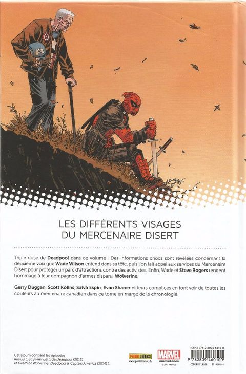 Cet album vaut principalement pour 2 histoires sur 3. La première est fondatrice de Deadpool et nous explique d' où lui venait la voix dans sa tête lors des premières saisons. La seconde est un pur délire d'auteur pour l'occasion d'un annual: dispensable. La dernière rend hommage à Wolverine, mort récemment. Aucun impact (...) Voir le commentaire