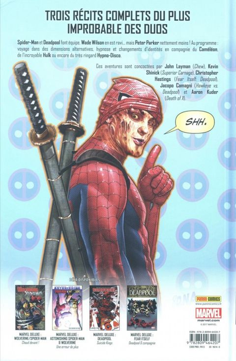 Spider-Man et Deadpool font équipe pour le plus grand plaisir de Wade Wilson (mais pas de Peter Parker) ! Dans ces trois aventures, les héros retrouvent le Caméléon, l'incroyable Hulk ou encore le ringard Hypno-Disco.