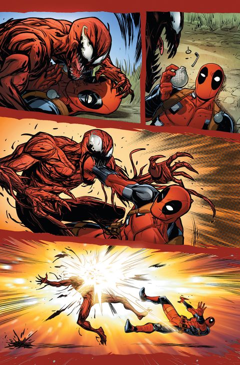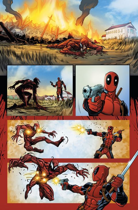 Deadpool se voit guidé par le destin pour chasser Carnage et le remettre en prison. Prétexte pour faire se rencontrer deux personnages bien barrés et meurtriers. Le scénario s'autorise quelques surprises au milieu du délire, les dessins sont bons mais je ne le classe pas dans les incontournables.