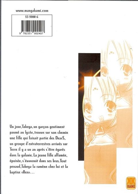 Un jour, Takeya, un garçon gentiment paumé à l'école, trouve sur son chemin une fille qui faisait partie des DearS, un groupe d'extraterrestres arrivés sur Terre il y a un an, après s'être égarés dans la galaxie. La jeune fille affamée, épuisée, s'évanouit dans ses bras. Tout penaud, Takeya la ramène chez lui et la baptise Ren. L'adolescence, la découverte et le regard de l'autre, la solitude et la différence, ainsi que la tendresse, sont les thèmes abordés avec humour et délire, par DearS. Comment un adolescent maladroit va-t-il gérer l'arrivée de cette plantureuse créature au coeur de sa vie ? Elle-même parviendra-t-elle à trouver une place dans ce monde qui lui est étranger ? Jouant gentiment sur les fantasmes de l'adolescence, et jouissant d'une grande liberté de ton, DearS est un manga drôle et savoureux, incorrigible et espiègle.\\0