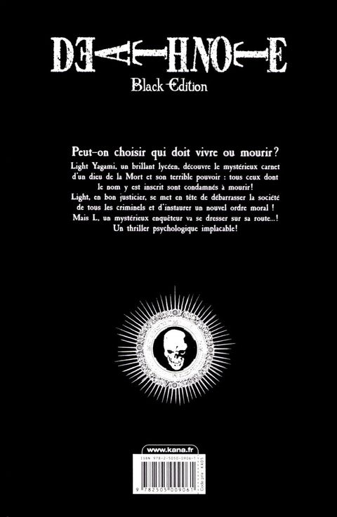 Tome 3. La résidence de Light est placée sous surveillance vidéo. L et Light se livrent un duel silencieux relayé par les caméras cachées dans la maison du jeune homme. Grâce à un habile stratagème, Light parvient à établir la preuve de son innocence. Cela n'empêche pas L d'avoir des soupçons de plus en plus forts et de passer à l'action. Parviendra-t-il à démasquer le mystérieux Kira ?!! Tome 4. Un second Kira, dont les méthodes diffèrent de celles de Light, a fait son apparition. Au quartier général d'enquête, L contacte Light afin de lui demander sa collaboration. Ce dernier découvre alors le sens cahé du message envoyé par l'autre Kira ! Light décide de préparer une rencontre? !
