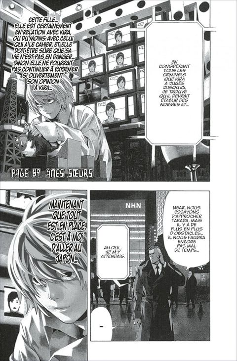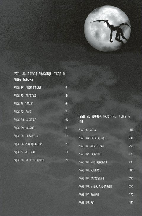 Tome 11 Par l'intermédiaire de Kiyomi Takada, Light communique avec Mikami à qui il a remis son cahier de la Mort. De son côté, Near décide de se rendre au Japon. Les différents acteurs de l'intrigue sont maintenant tous réunis dans l'archipel. Quelle direction les événements vont-ils prendre ? Tome 12 Le dénouement est proche pour Light et Near qui vont enfin s'affronter ! Quelles stratégies ces deux esprits hors du commun ont-ils donc élaborées pour prendre le dessus sur leur adversaire ? Dernier chapitre pour le Death Note qui se refermera définitivement après cet ultime duel !