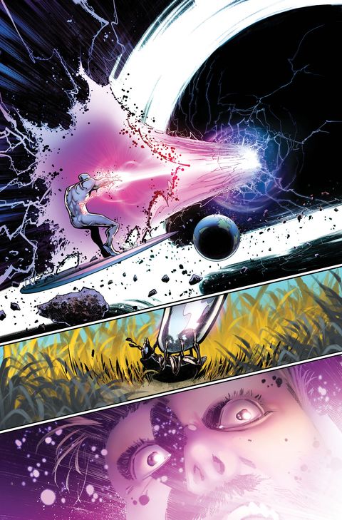 Alors que la Terre sombre dans la guerre, le Silver Surfer revient des confins du cosmos pour protéger la planète qui lui a rendu son humanité. Mais un nouvel adversaire a juré de le dépouiller de tout ce qu'il possède. Si le Surfer venait à tomber, qui manierait le Pouvoir Cosmique ? Avec, en invités de marque, Galactus et les Quatre Fantastiques. Figure tragique par excellence de l'univers Marvel, le Silver Surfer trouve ici une histoire à la hauteur de sa légende. Greg Pak (Planet Hulk) signe un récit à la fois grandiose et bouleversant, sublimé par les dessins de Sumit Kumar (Spider-Man : Black Suit & Blood). Une oeuvre cosmique et poignante qui pourrait bien marquer un tournant pour Norrin Radd.