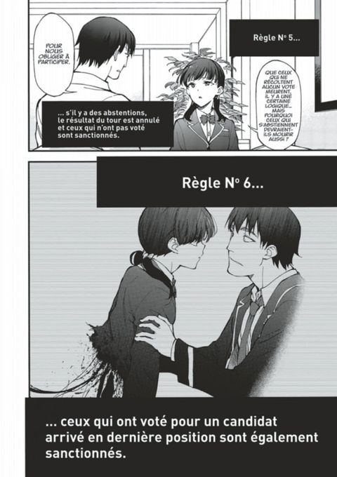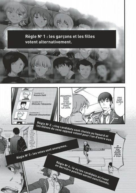 Le sordide vote de popularité se poursuit au sein de la classe 2-A. Les élèves seraient prêts à sacrifier n'importe qui pour survivre ! Par ailleurs, le mystérieux « maître des votes » semble ne pas en être à son coup d'essai... Pourtant, un terrible fardeau repose sur les épaules de Shûsuke : c'est maintenant à lui de décider lequel de ses camarades devra vivre et lequel devra mourir...!!