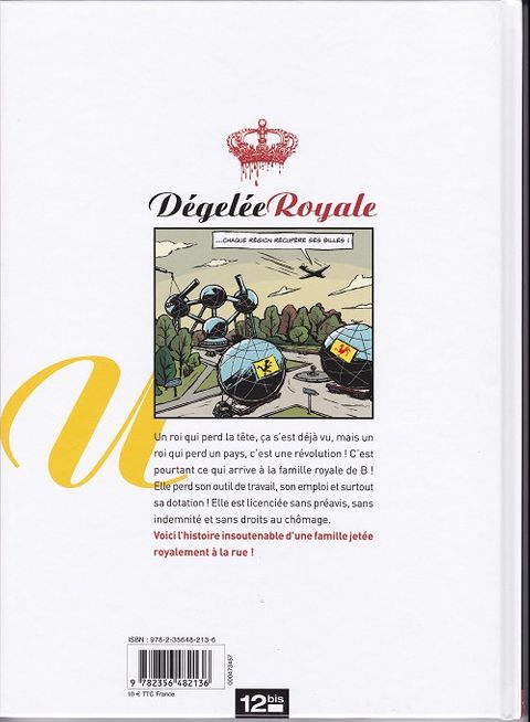 Ça devait arriver ! Depuis le temps qu'ils se prennent la tête avec des questions sans réponses : craac ! les Belges se séparent, la Belgique se divise ! On se dit que pour une fois, dans cette histoire, personne ne va perdre son boulot ! Erreur ! La famille royale belge n'est plus rien, puisqu'il n'y a plus de Belgique. Elle perd son emploi, son outil de travail et sa dotation. Elle est licenciée sans préavis et sans indemnités. Les pauvres ! D'habitude, quand les gens se séparent, ils se disputent la garde de l'enfant, mais dans le cas présent, personne ne veut du petit Albert ! Comment va-t-il survivre ? Pourra-il s'en sortir ? Qui va venir en aide à la monarchie belge ? L'Eglise ? L'aristocratie ? Les banques ? Pour retrouver du travail, la famille royale ne va pas chômer. Dégelée Royale raconte l'histoire insoutenable d'une famille jetée royalement à la rue !
