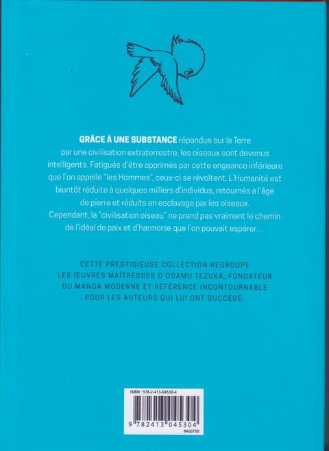 Toujours un plaisir de retrouver une des œuvres de TEZUKA. Les oiseaux se sont vus dotés de conscience pour devenir les être dominants de la Terre. Ascension et chute d'une société qui retombe dans les travers de la civilisation humaine qu'elle supplante. Très bonne uchronie critique de notre société.