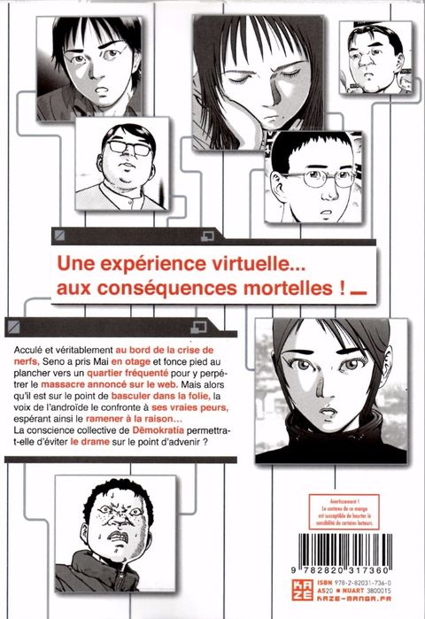 Acculé et véritablement au bord de la crise de nerfs, Seno a pris Mai en otage et fonce pied au plancher vers un quartier fréquenté pour y perpétrer le massacre annoncé sur le web. Mais alors qu'il oscille entre folie et raison, la voix de l'androïde, porte-voix d'un peuple virtuel, le pousse dans ses derniers retranchements. La conscience collective de Demokratía permettra-t-elle d'éviter le drame sur le point d'advenir ?