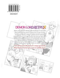 Le seigneur démon surpuissant revient !Cette fois, il est accompagné d'une idole lycéenne !Après avoir atteint le dernier palier du donjon et rencontré celui qu'il soupçonne être le créateur de cet autre monde, le Seigneur démon se dirige à présent vers le territoire démoniaque, terrain d'affrontement de puissants démons.Il est rejoint dans son voyage par une lycéenne à la joie de vivre débordante, venue pimenter encore davantage cette bande de personnages hauts en couleur. Ainsi débute la nouvelle saison de ce manga tant attendu alliant fantasy et humour, qui a connu un véritable succès !</b<Demon Lord Retry! R reprend l'adaptation du light novel éponyme exactement là où la série précédente l'a laissée ! On y retrouve avec plaisir la même galerie de personnages déjantés et attachants, tandis que de nouvelles têtes rejoignent Hakuto dans sa quête et que le mystère de sa présence en ce monde s'éclaircit petit à petit...