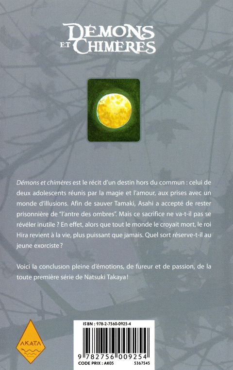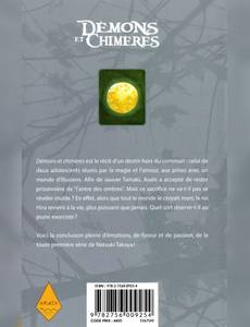 Démons et chimères est le récit d'un destin hors du commun : celui de deux adolescents réunis par la magie et l'amour, aux prises avec un monde d'illusions. Afin de sauver tamaki, asahi a accepté de rester prisonnière de " l'antre des ombres " : mais ce sacrifice ne va-t-il pas se révéler inutile ? en effet, alors que tout le monde le croyait mort, le roi hira revient à la vie, plus puissant que jamais. quel sort réserve-t-il au jeune exorciste ? voici la conclusion pleine d'émotions, de fureur et de passion, de la toute première série de natsuki takaya !