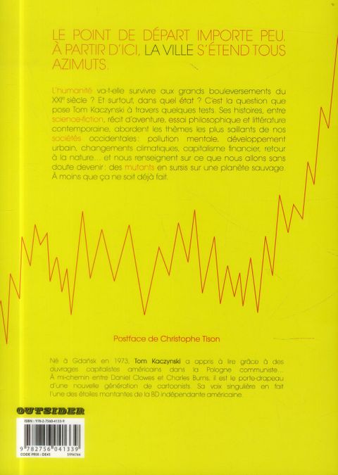 Pollution, développement urbain, changements climatiques, capitalisme financier et retour à la nature. Une douzaine d'histoires, entre science-fiction, récits d'aventures et littérature contemporaine, abordent les thèmes les plus saillants du monde moderne. Tom Kaczynski nous renseigne sur ce que nous sommes et ce que nous allons sans doute devenir : des mutants en sursis sur une planète redevenue sauvage.