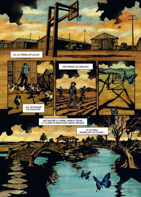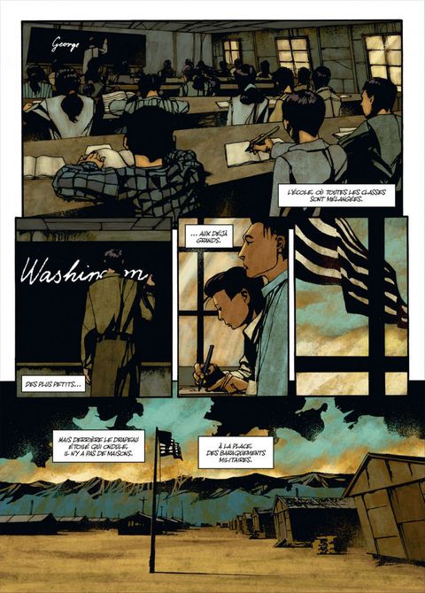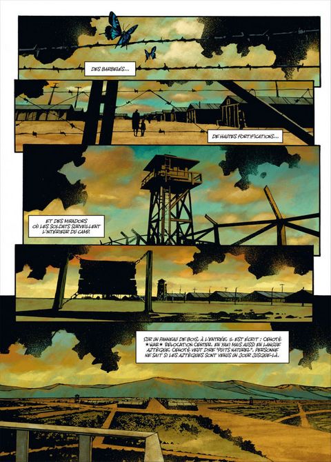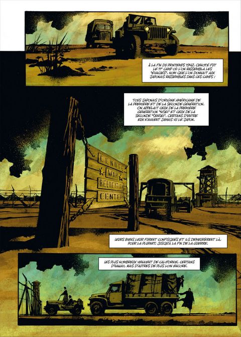 Une petite ville en Amérique, de Dionnet et Zezelj, nous fait découvrir une bourgade plutôt quelconque si ce n'est qu'elle accueille des « évacués », ces Japonais vivant rassemblés dans des camps, sur le sol des États-Unis. Des dieux et des hommes, tome 3 : 1943, Californie. Un jour, dans une banale « Petite ville en Amérique » arrive un Premier, un des dieux apparus sur la Route 66 après le krach boursier de 1929. Il est Japonais, né aux États-Unis, et le gouvernement a une mission pour lui : mettre hors d'état de nuire un autre dieu, lequel aurait été recruté par les Allemands pour accélérer la fin de la guerre. Mais avant de dire « oui », il veut voir son père qui est interné. Ce 3e volet de Des Dieux et des hommes, une uchronie qui conjugue action, combat, humour et fantastique, est exceptionnellement mis en images par Danijel Zezelj, la star du comics américain.