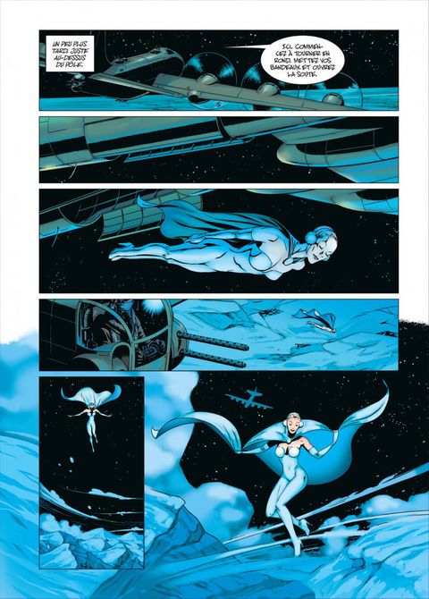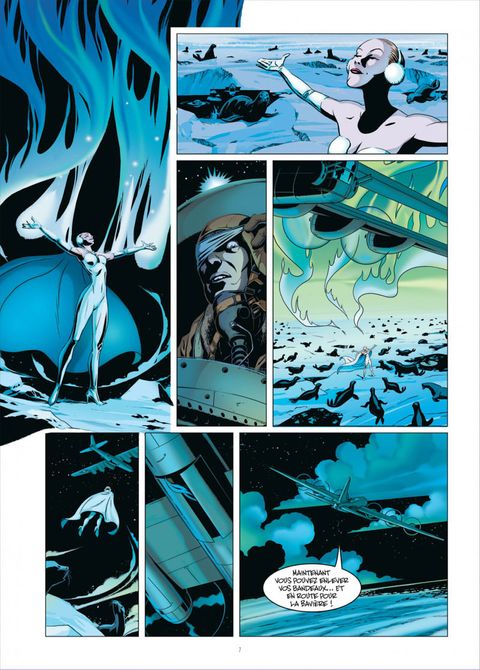 Des dieux et des hommes est une uchronie imaginée par Dionnet, ce 4e tome intitulé « Un château en Bavière » propose deux récits qui mettent en scène ces « dieux » qui, finalement, se font l'écho de notre questionnement : peut-on rester indifférent aux problèmes du monde ? Le premier épisode de ce 4e volet des Dieux et des hommes nous entraîne en 1945 : un bombardier allié vole en direction de la Bavière. À son bord, dans le plus grand secret, la Reine des neiges et le Danseur. Ils ont accepté une mission cruciale pour la suite de la guerre. Dans le château bavarois digne d'un conte de fées où ils doivent combattre, une chorégraphie belle et meurtrière s'engage, exécutée avec élégance et désinvolture par les dieux. La seconde histoire proposée dans l'album se déroule en 1955, les dieux se réunissent pour décider s'ils vont continuer à fréquenter les hommes. Deux histoires dans ce 4e opus de Des dieux et des hommes, l'une dessinée par une star du comics américain - le Danois Peter Snejbjerg - et l'autre par l'un des plus grands noms de la bande dessinée italienne - Ivo Milazzo.