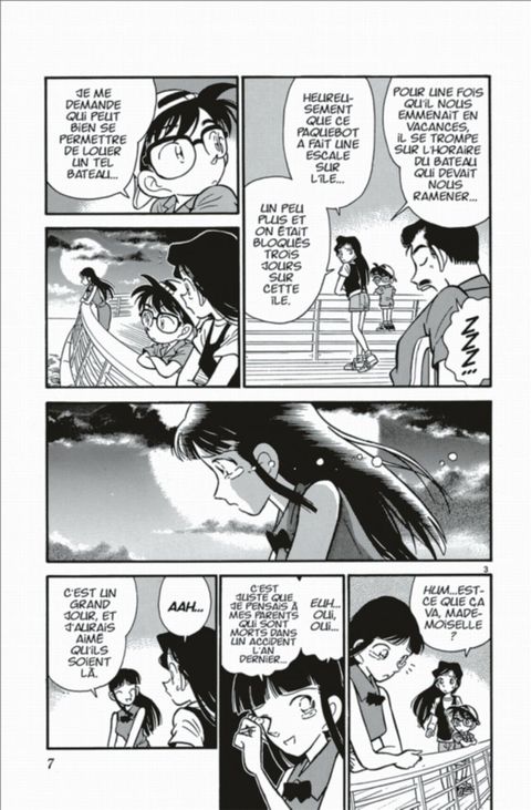 Premiers soupçons de Ran à propos de l'identité de Conan. Enigmes principales: Le chef de la famille Takemoto est assassiné en chambre close sur un bateau de croisière. Enquête sur la disparition d'un petit garçon.