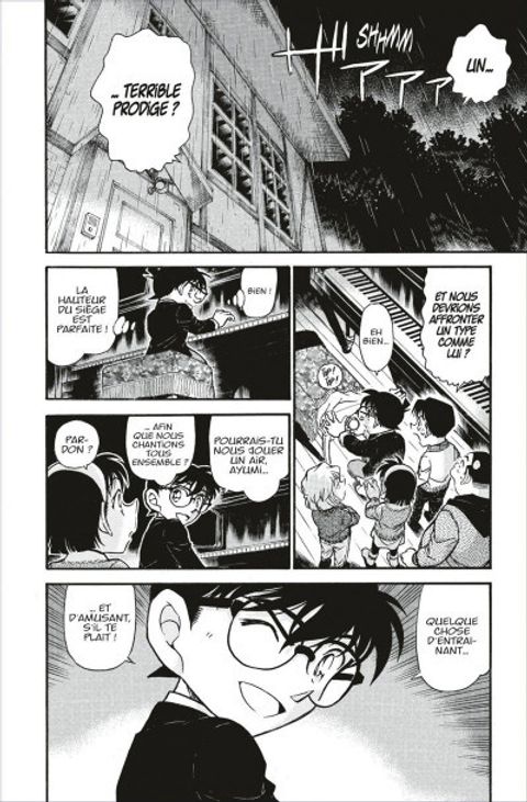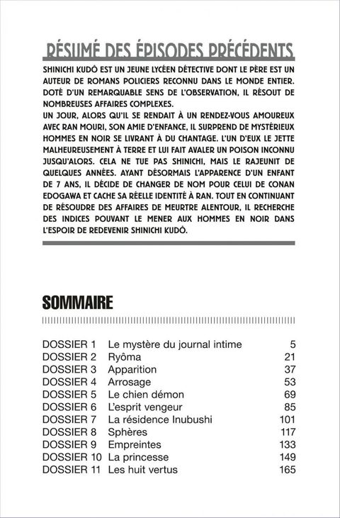 Le grand cambrioleur Kaito Kid envoyant un message annonçant qu'il veut rendre les trésors du patrimoine de Ryôma, c'est du jamais vu ! Et cela cache sûrement quelque chose, mais quoi...?! Avant de retrouver Kid pour cette nouvelle affaire, Conan réglera d'abord celle du rapt d'enfant. Puis il résoudra l'énigme du mystérieux chien démon !!