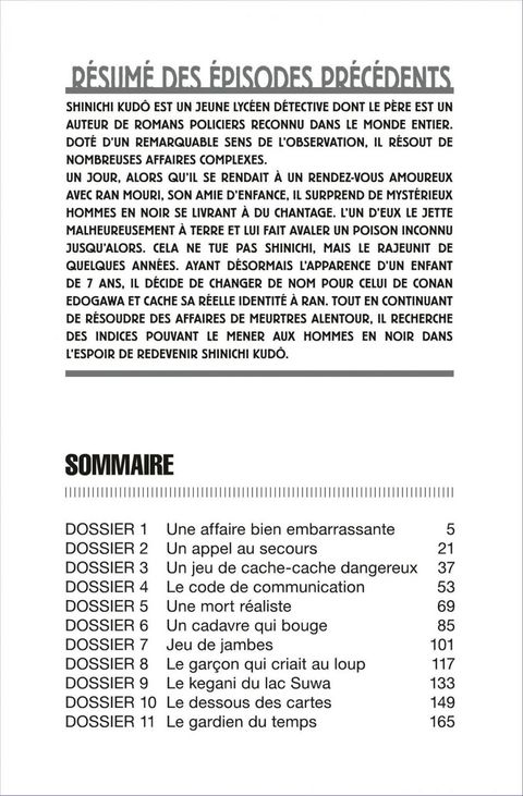 À Londres, où il tente de déjouer les plans d'un criminel, Conan (Shinichi) se retrouve face à face avec Ran... Lui déclarera-t-il enfin sa flamme ?! Ne manquez pas les autres aventures de ce tome, le code d'alerte 252, la clinique de l'horreur à l'université de Beika, et une partie de cartes qui mettra le groupe des jeunes détectives à rude épreuve !