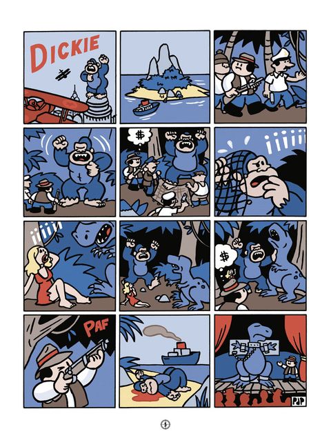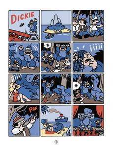 Dickie enchaîne les bourdes et détruit nos films préférésLes lecteurs de "Ferraille" connaissent déjà Dickie, cet anti-héros moustachu, à tête de Playmobil, qui se balade avec ses gros sabots dans toutes les époques de l'Histoire. Après ses aventures grimé en fils d'Hitler, Glénat publie un recueil de gags où Dickie se balade dans les séquences des grands classiques du cinéma comme Titanic, Star Wars ou Frankenstein, et y fait preuve de son incroyable sens de la boulette.Pour notre plus grand plaisir sadique, Pieter de Poortere se fait le chantre de l'irrévérence et du mauvais goût qui défoulent, en égratignant les scènes gravées dans l'imaginaire collectif. Un album délirant, hilarant et potache, qui devrait séduire un public au moins aussi large que celui du Titanic de Cameron !