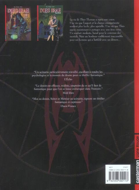 La vie de Théo Thomas a repris son cours. Une vie que l'argent et la chance omniprésente rendent plus facile, plus agréable. Une vie que Théo aspire maintenant à partager avec une âme soeur. Un souhait modeste, banal pour le commun des mortels. Mais un bonheur visiblement inaccessible pour un homme qui a batifolé avec un démon... "Un scénario particulièrement travaillé, excellant à rendre les psychologies et la montée du drame pour ce thriller fantastique." L'Écho "Le dessin est efficace, réaliste, empreint de ce qu'il faut de fantastique pour que l'on se laisse embarquer dans l'histoire." Midi libre "Max au dessin, Seiter et Mercier au scénario, signent un thriller fantastique et captivant." Ouest France