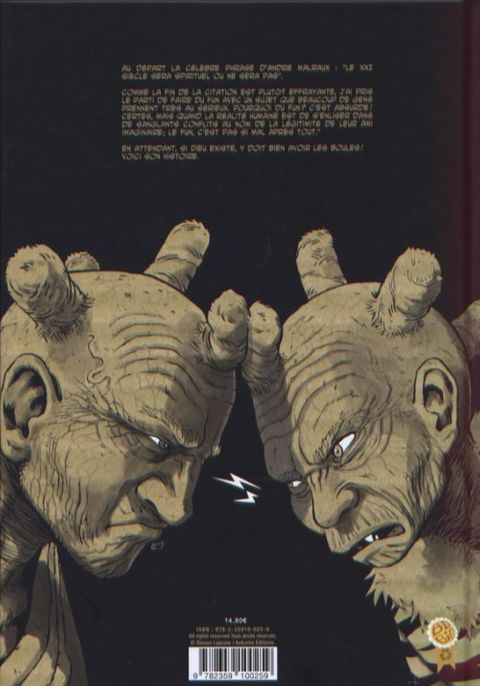 Au départ la célèbre phrase d'André Malraux : "le XXIe siècle sera spirituel ou ne sera pas". Comme la fin de la citation est plutôt effrayante, j'ai pris le parti de faire du fun avec un sujet que beaucoup de gens prennent très au sérieux. Pourquoi du fun? c'est absurde ! certes, mais quand la réalité humaine est de s'enliser dans de sanglants conflits au nom de la légitimité de leur ami imaginaire; le fun, c'est pas si mal après tout." En attendant, si dieu existe, y doit bien avoir les boules ! voici son histoire.