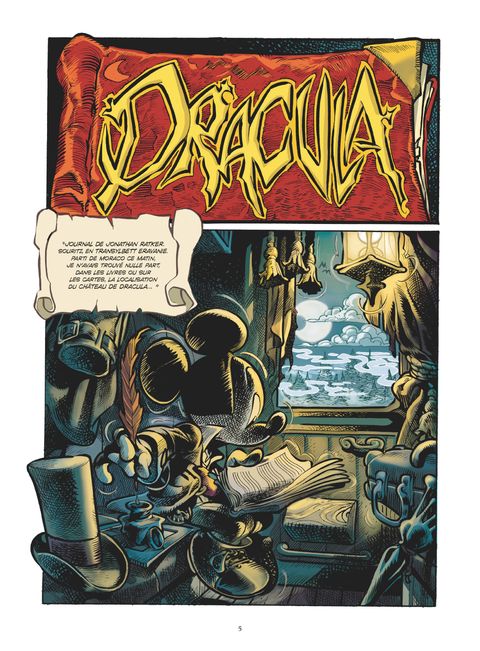 Le chef-d'oeuvre de Bram Stoker, version Disney ! Invité par le mystérieux comte Dracula, Jonathan Ratker, alias Mickey Mouse, arrive au château de Beetsylvanie. Il pense conclure une bonne affaire pour son cabinet d'avocats, mais il ne va pas tarder à comprendre que la réputation du comte n'est pas sans fondement ! Prisonnier de cette imposante demeure, il commence à envoyer des lettres enflammées à sa dulcinée Minnie. Pendant ce temps Minnie, peinée se retrouve face à une autre énigme... son amie Clara-Lucia est en proie à la fièvre après avoir croisé une étrange créature. Minnie fait alors appel à un médecin, Dingo Van Helsing, spécialisé dans le surnaturel ! Ce que ce dernier va découvrir dépasse son imagination... Ratker doit à tout prix s'échapper s'il veut empêcher Dracula de s'en prendre à ceux qu'il aime le plus ! Après Moby Dick, L'Ile au trésor ou encore Duckenstein retrouvez un autre grand classique de la littérature revisité par Disney et entrez dans un monde où les vampires sortent de l'ombre avec une adaptation dynamique à la mise en scène ingénieuse.