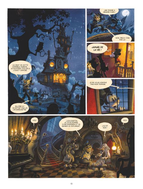 Oserez-vous franchir la grille de Horrifikland ? Disparition. Mickey, Donald et Dingo tiennent une agence de détective. Sauf que les affaires tournent moyennement : pas un contrat en vue depuis des jours ! Mickey songe même sérieusement à plier boutique, lorsqu'une vieille dame leur charge de retrouver son petit chat Blacky. Problème : celui-ci aurait été aperçu pour la dernière fois prêt du terrifiant parc abandonné « Horrifikland », dont certaines attractions fonctionnent toujours... Au programme : brouillard artificiel, décor de cimetière, chauves-souris et fantômes plus vrais que nature ! Pour retrouver Blacky, les nerfs de nos acolytes seront mis à rude épreuve...Rejoignant le prestigieux casting des dessinateurs de créations originales Disney, Alexis Nesme nous propose, de son somptueux travail en couleurs directe, un univers gothique et baroque digne des superproductions de Tim Burton. À l'écriture, Lewis Trondheim nous réjouit d'un scénario riche en rebondissements qui n'est pas sans rappeler les meilleurs épisodes de Scooby Doo !