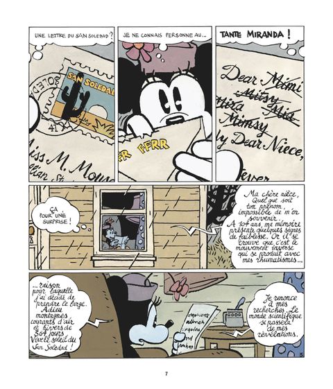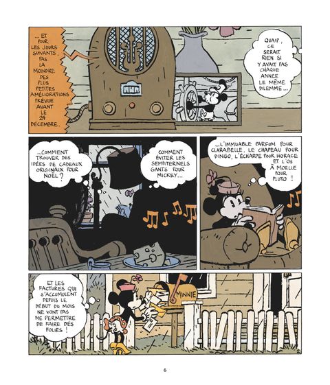 Histoire très originale, ce n'est pas habituel d'avoir Minnie Mouse en héroïne et surtout de ne quasiment pas voir Mickey ! Ce n'est pas pour déplaire, au contraire, la dynamique est différente qu'à l'accoutumée et le duo avec Clarabelle fonctionne très bien. Les décors et planches de Cosey sont magnifiques! (...) Voir le commentaire