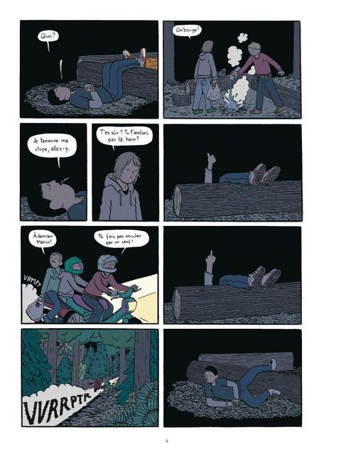 Lycéen attachant mais qui n'en branle pas une, Marco s'emmerde dans sa banlieue belge des années 1990. Seuls la fumette, l'alcool et les jeux dangereux le font se sentir un tant soit peu vivant. Malgré un groupe de potes soudés, il traine sa loose de parking de boîtes de nuit en fossés de routes de campagne. Sa rencontre avec Zoé lui permettra-t-elle de sortir de ce funeste engrenage ? Max de Radiguès s'attache à décrire le malaise qui peut habiter des jeunes pourtant sans problème, en perpétuelle quête de repères.