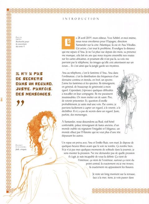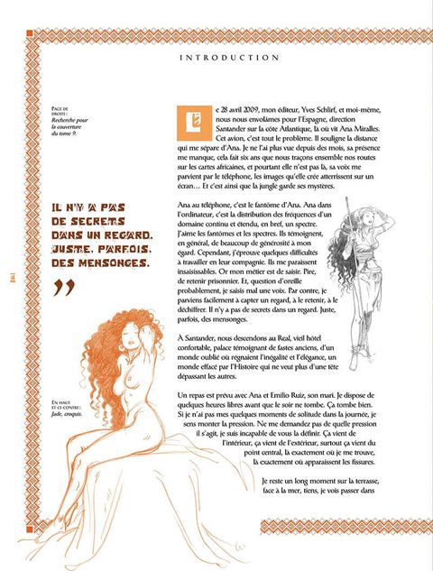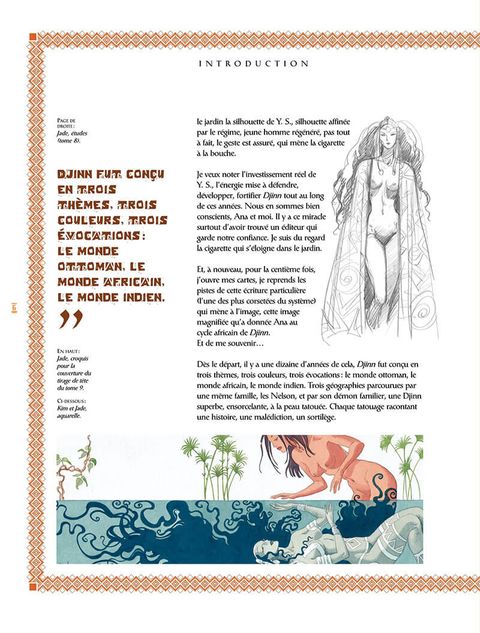 Le cycle Africa terminé, la perle noire retrouvée et les secrets des Nelson révélés, Jean Dufaux et Ana Mirallès peuvent lever le voile sur ce qui était caché. Au fil des pages de ce beau livre, la dessinatrice de Djinn dévoile ses esquisses, prémisses de ces somptueuses planches et couvertures qui font le charme sensuel de la série. Jean Dufaux, quant à lui, invite le lecteur à l'accompagner sur les chemins de sa réflexion, de ses envies, en distillant aussi les anecdotes, comiques ou tragiques, qui émaillèrent les cinq albums de ce cycle torride et sauvage.
