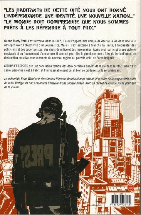 Matty Roth a joué tous les rôles dans la DMZ. Il a été témoin, victime et résistant mais dans cet album, il décide d'interpréter un nouveau personnage, celui de chef ! Il a en effet décidé de prendre le pouvoir. Aidé par une force de sécurité privée, il veut reprendre le contrôle de la ville pour la mener sur le chemin de la reconstruction. Mais Matty a-t-il vraiment la carrure pour endosser cette fonction ? C'est ce que nous dévoilent Brian Wood et Riccardo Burchielli dans ce volume qui marque un tournant important dans la saga.