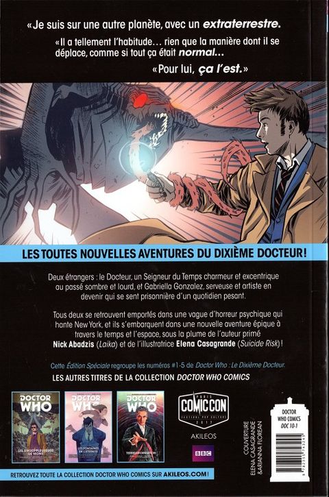 Le Dixième Docteur pensait en avoir fini avec les nouveaux compagnons après la sortie tragique de Donna... Mais c'était avant de rencontrer Gabriella « Gabby » Gonzalez pendant une incursion de parasites psychiques à Brooklyn ! Coincée dans la laverie automatique de son père, Gabby a toujours rêvé d'horizons bien plus lointains : aller à la fac, devenir une artiste, ou simplement s'échapper de cette vie un moment. À présent, elle voyage dans le cosmos en tant que compagne du Docteur, et la vie ne pourrait pas être plus excitante ! Combattant des créatures invisibles le soir d'Halloween ou découvrant un complot dans la galerie d'art la plus célèbre de l'univers, le seul défaut qu'elle puisse trouver à son voyage est le risque constant d'être tuée !